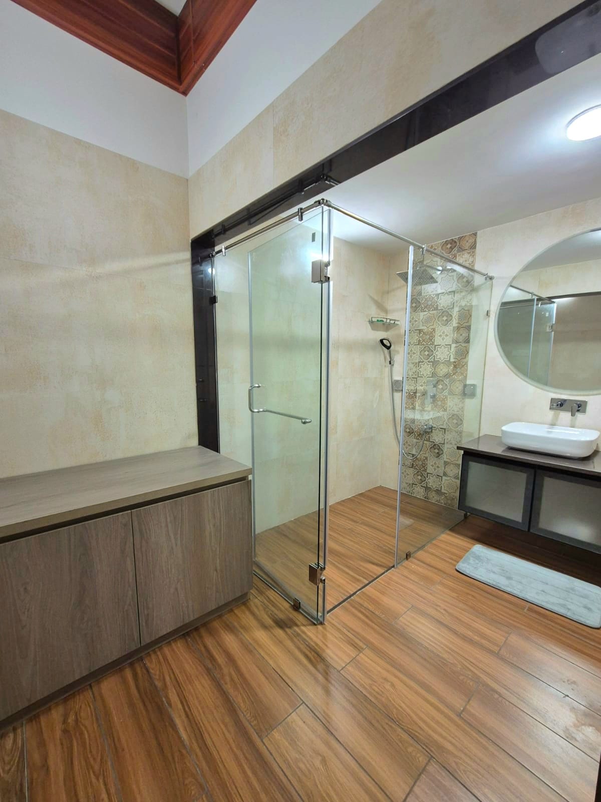 - Flooring: Combination of vitrified tiles and ceramic tiles.